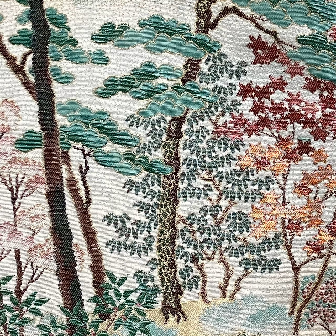 This is a colored tomesode with a garden of the Golden Pavilion and a single crest.