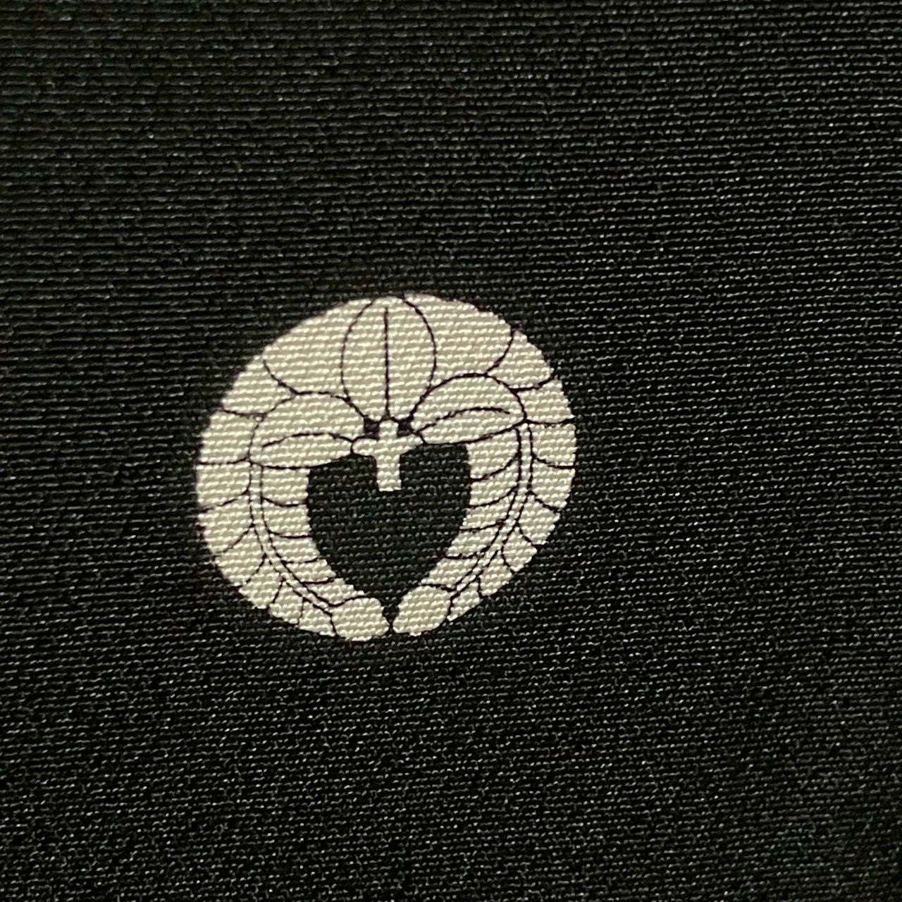 This is a black tomesode with fan and crane design, artist's work, and gold color.