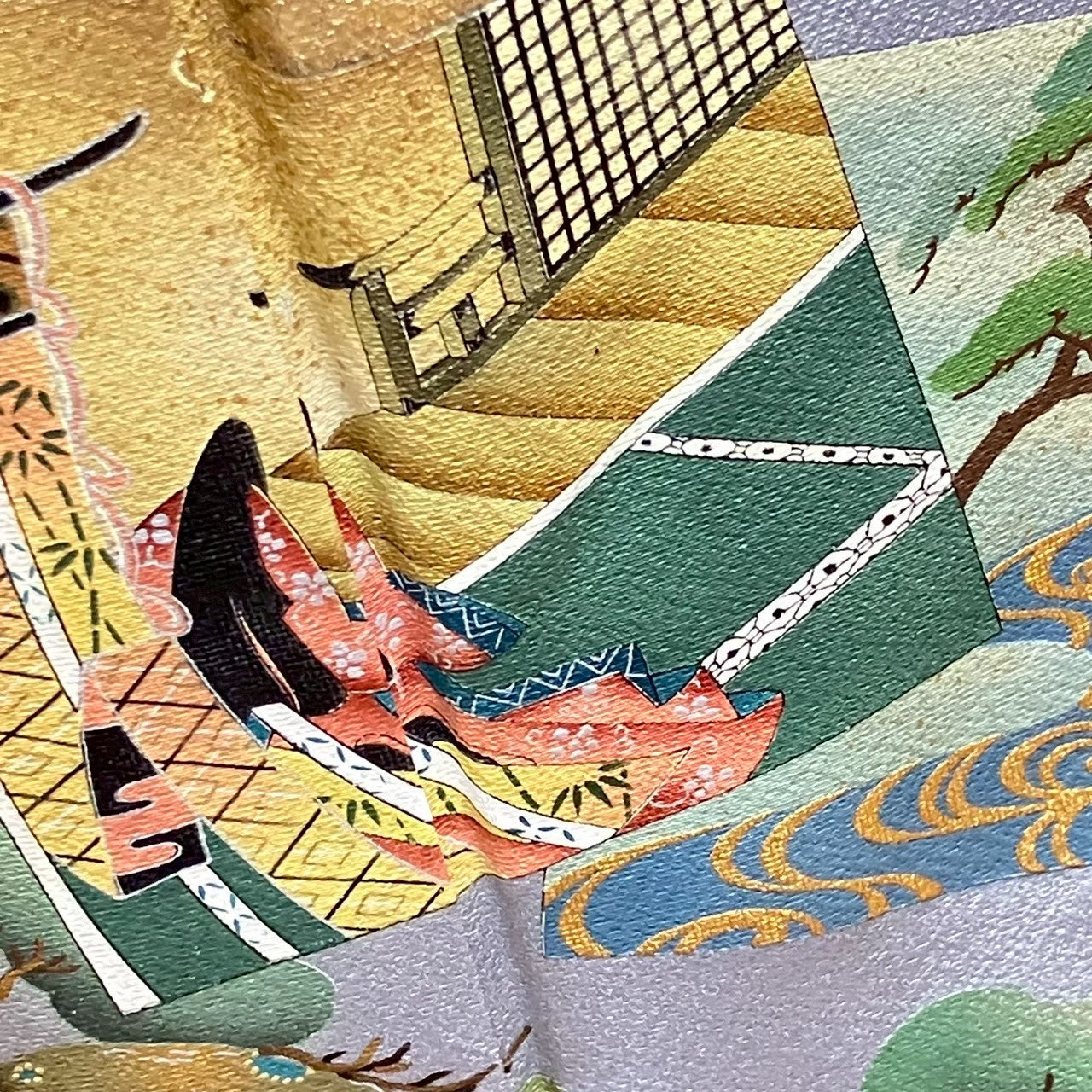 This is a color tomesode with a landscape pattern, artist's work, and a single crest.