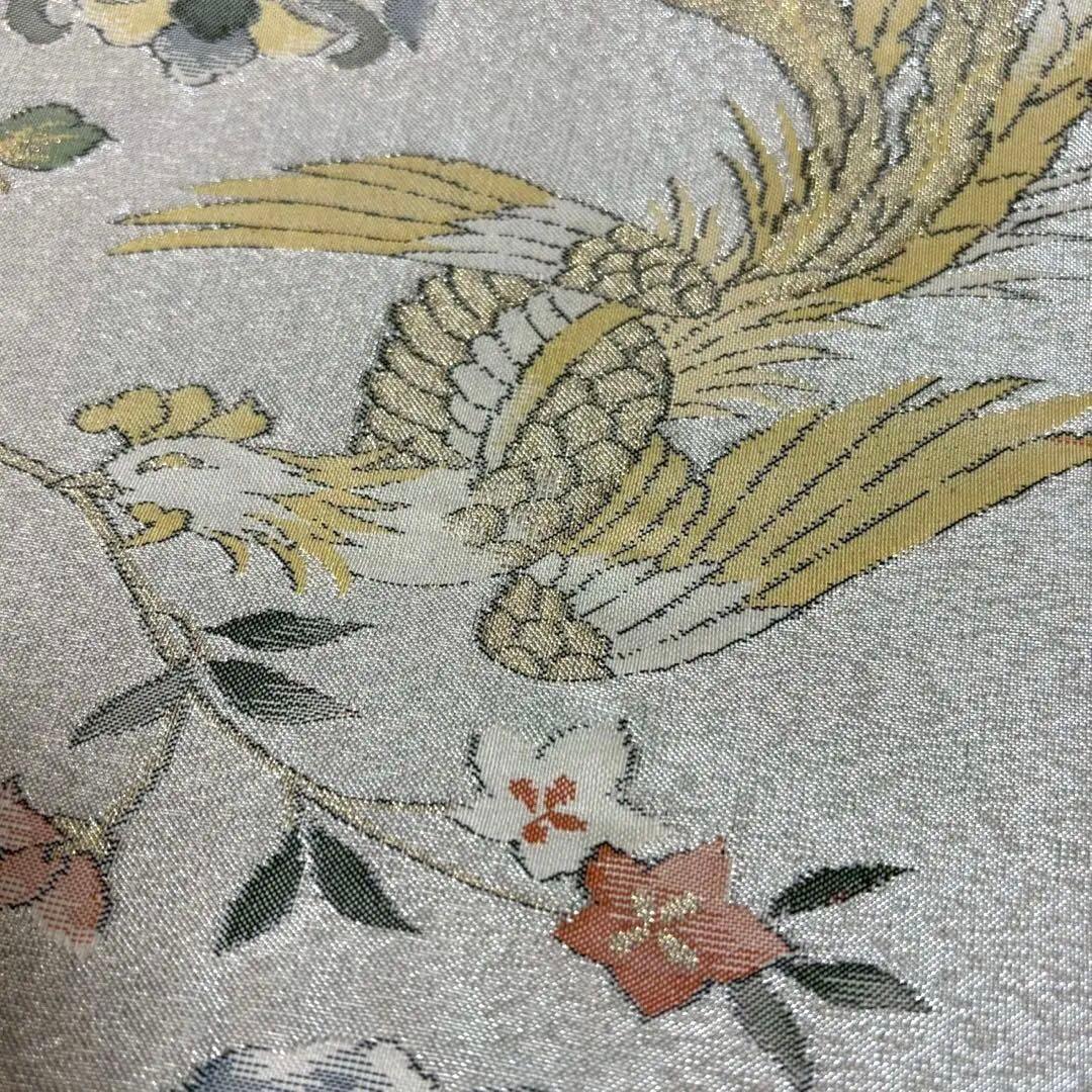 6152# Japanese Vintage Fukuro Obi Belt Kimono Fabric Silk Traditional Silver