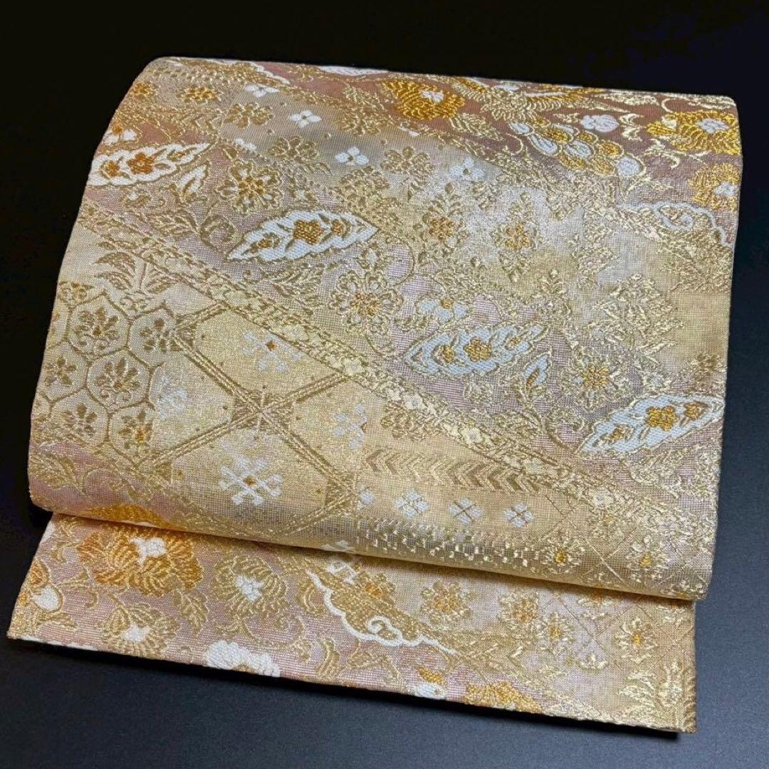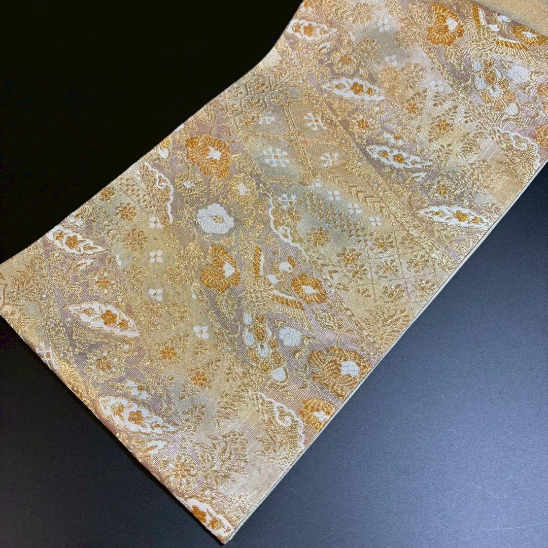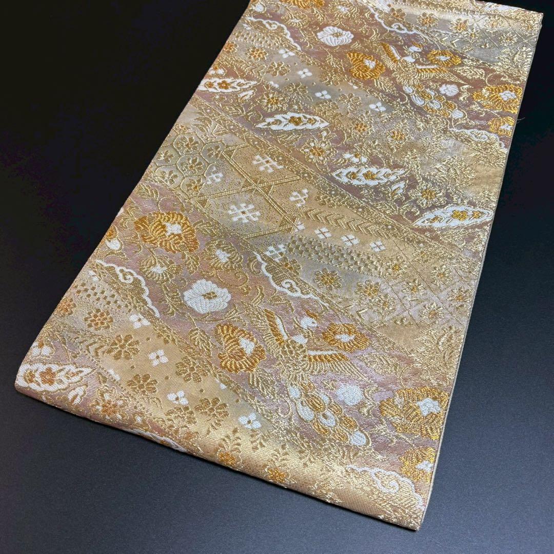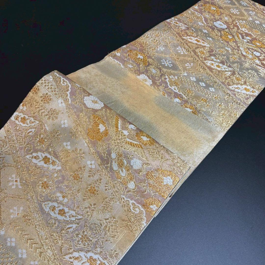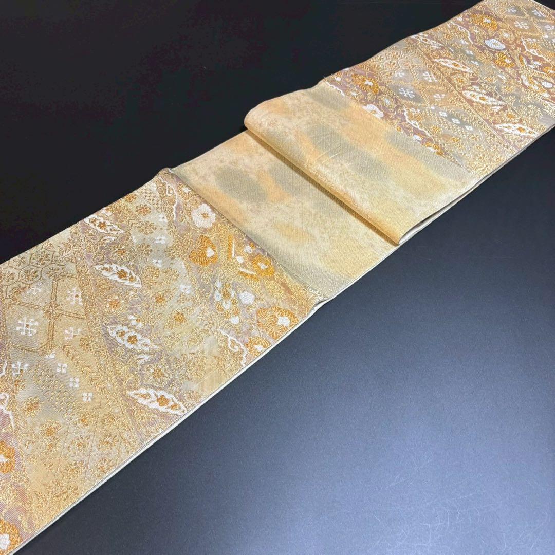 6153# Japanese Vintage Fukuro Obi Belt Kimono Fabric Silk Traditional Gold