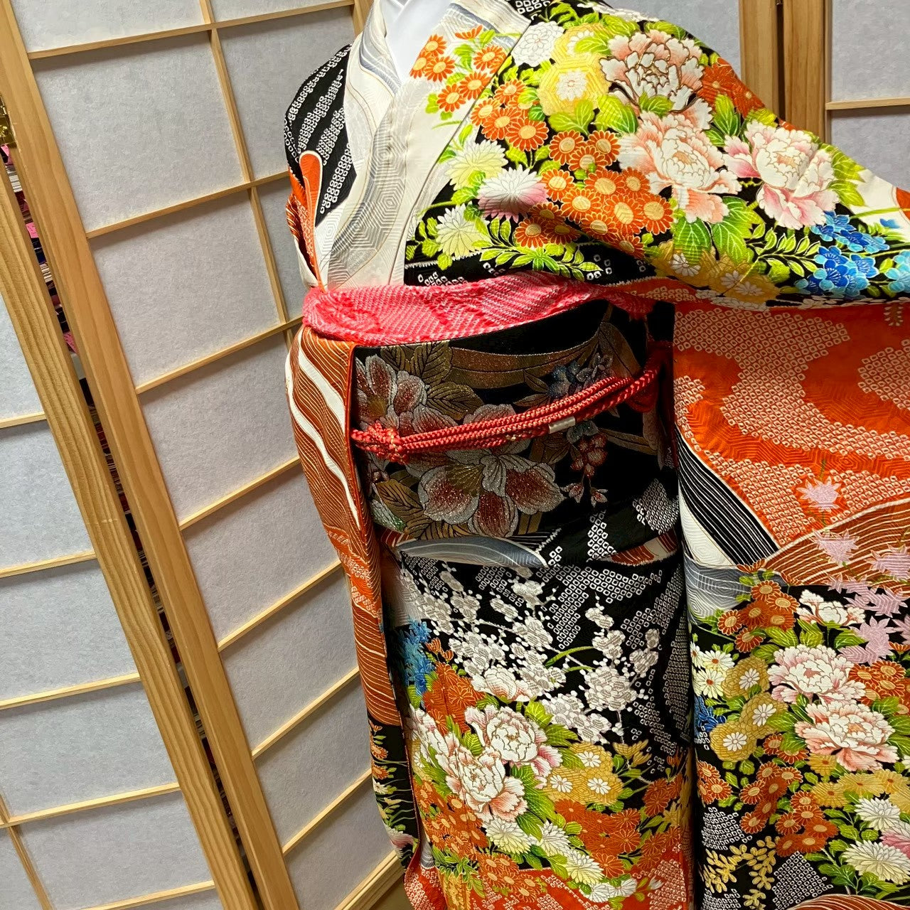 This is a 4-piece set including a furisode, fukuro-obi, obijime, and obiyage!