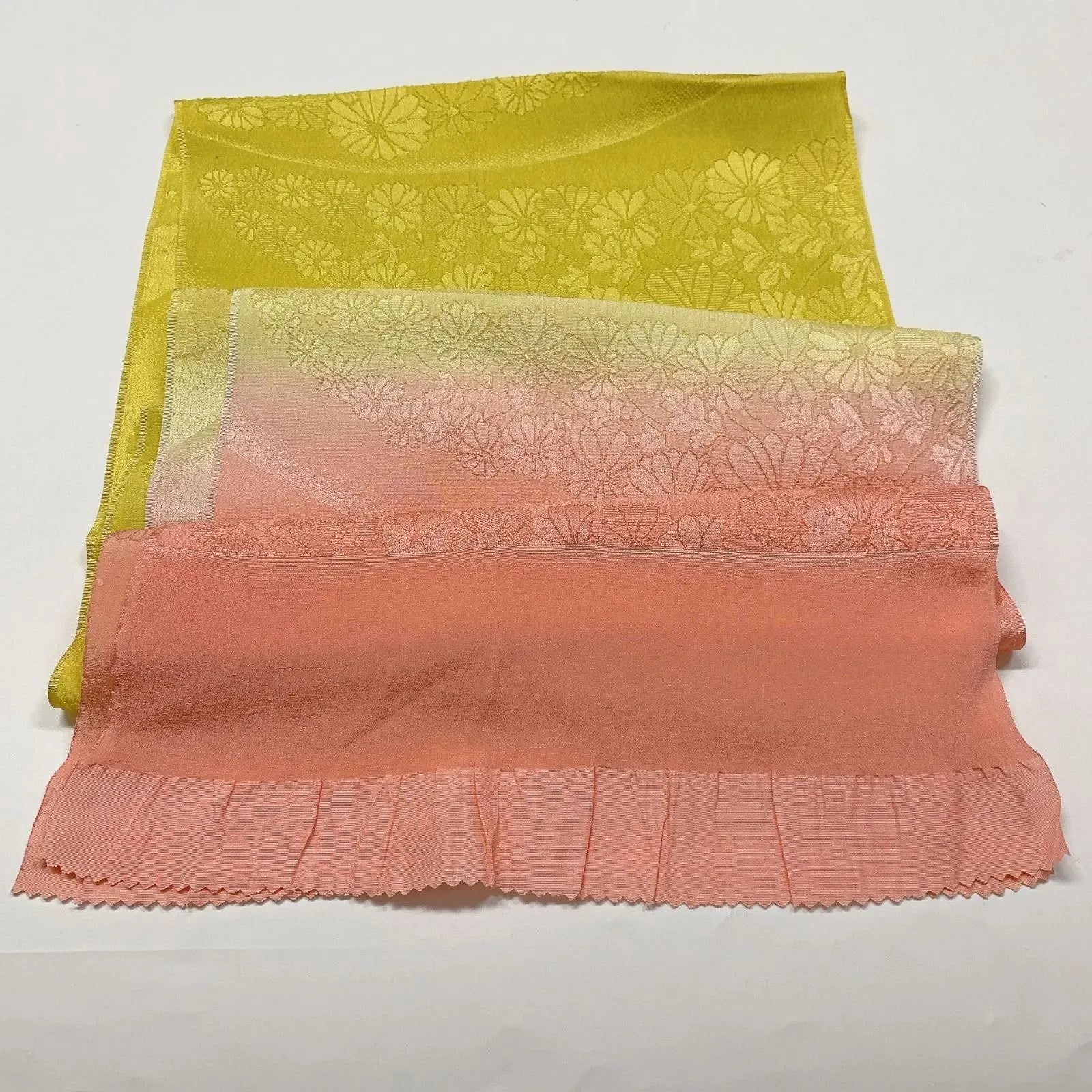 This is a 2-piece set featuring an obi-jime and an obi-age with a chrysanthemum pattern and a blurred design.